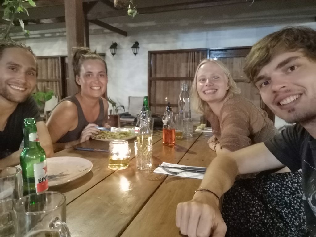 Leon und Luise aus Deutschland, die wir in Thailand kennengelernt hatten und auch schon im Süden Lomboks wieder getroffen hatten, verbringen ebenfalls einige Tage hier und so gehen wir mehrmals gemeinsam Abendessen oder genießen den Sonnenuntergang am Strand.